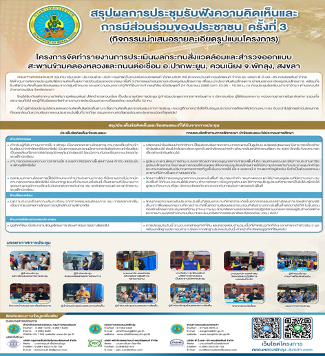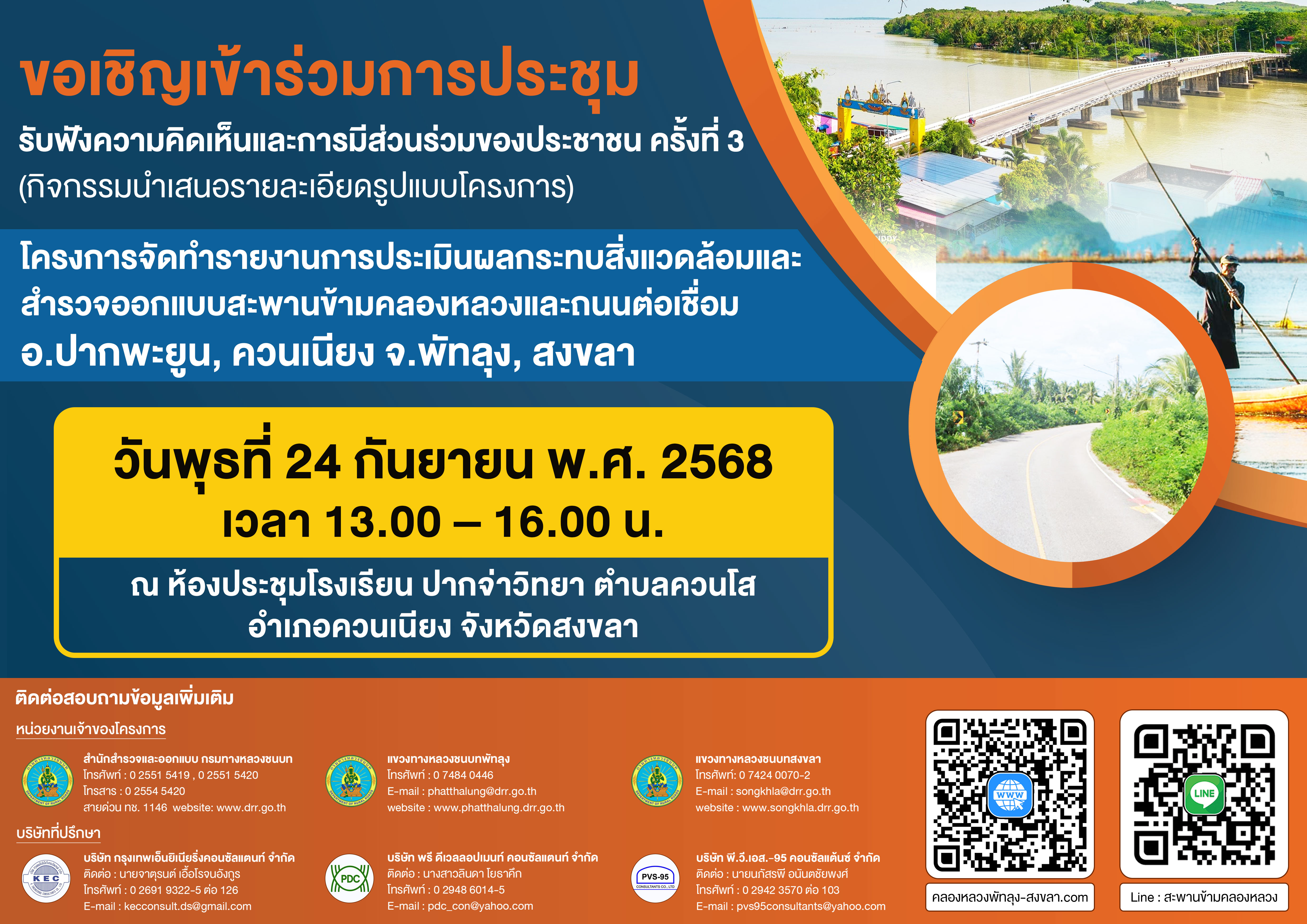 ปัจจุบันการเดินทางระหว่าง บ้านปากจ่า อำเภอควนเนียง จังหวัดสงขลา ไปยังบ้านท่าเนียน ตำบลเกาะนางคำ อำเภอปากพะยูน จังหวัดพัทลุง ต้องใช้ระยะทางประมาณ 40 กิโลเมตร ใช้ระยะเวลาประมาณ 1 ชั่วโมง หรือต้องใช้เรือข้ามฟากในการสัญจร ทำให้เกิดความไม่สะดวกและล่าช้า หากเกิดกรณีฉุกเฉินที่ต้องเดินทางไป โรงพยาบาลหรือหน่วยงานราชการ จะไม่สามารถเดินทางได้อย่างทันท่วงที ทั้งนี้ ปัญหาดังกล่าวทั้งหมด สามารถบรรเทาได้โดยการก่อสร้างสะพานข้ามคลองหลวงและถนนต่อเชื่อม อ.ปากพะยูน, ควนเนียง จ.พัทลุง, สงขลา หากโครงการแล้วเสร็จ จะเป็นการเพิ่มประสิทธิภาพในการเดินทางและการขนส่ง ช่วยพัฒนาและต่อเติมโครงข่ายทางหลวงชนบทให้สมบูรณ์ด้วยการเป็นทางลัด (By Pass) ทางเลี่ยง (Shortcut) ระหว่างจังหวัด สร้างทางเชื่อม (Missing Link) ระหว่าง ทางหลวงชนบทสาย พท.5051 จังหวัดพัทลุง ทางหลวงชนบทสาย สข.4052, สข.4020 จังหวัดสงขลา และ ทางหลวงแผ่นดินหมายเลข 406 ให้มีความสมบูรณ์ยั่งยืน